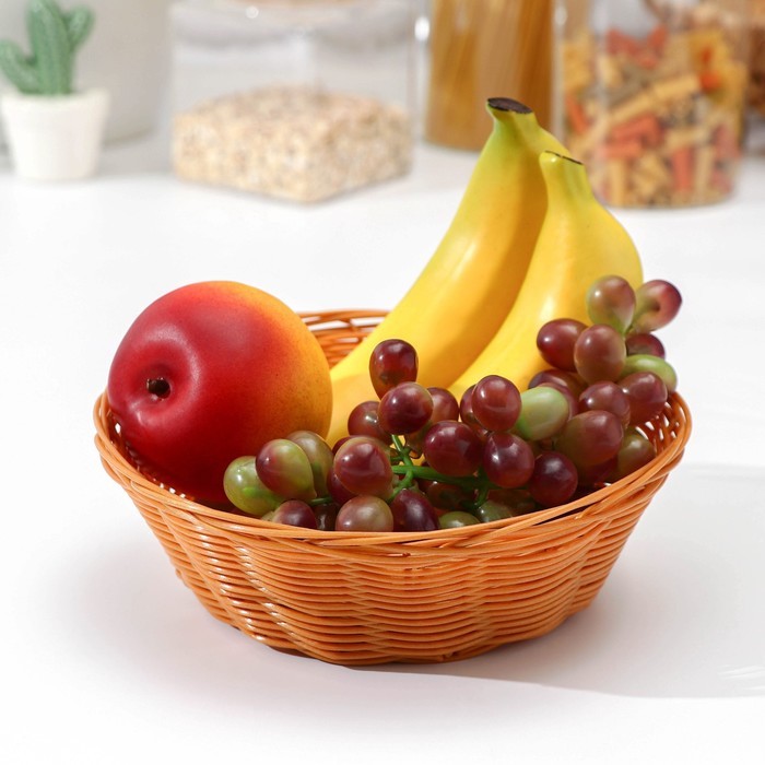 Корзинка для фруктов и хлеба Доляна «Ваниль», 21?6,5 см, пластик, плетёная, молочнаяВопросы по товару