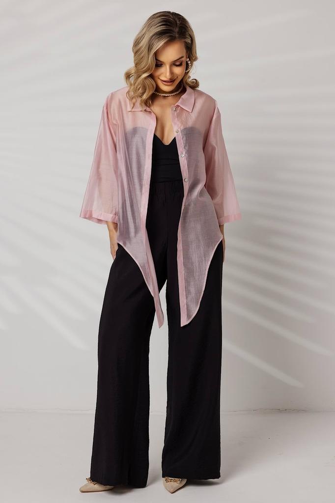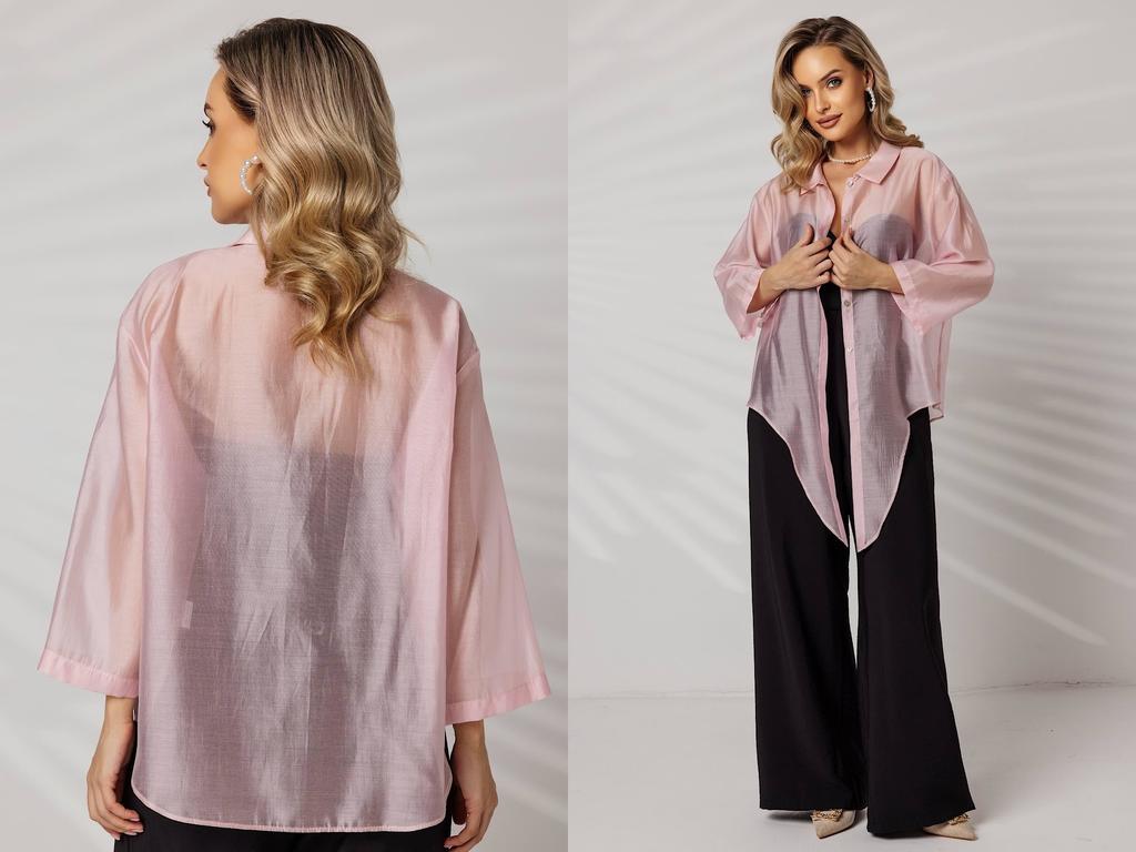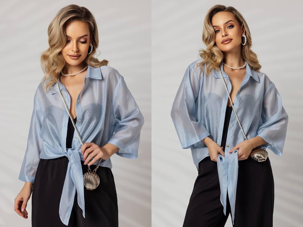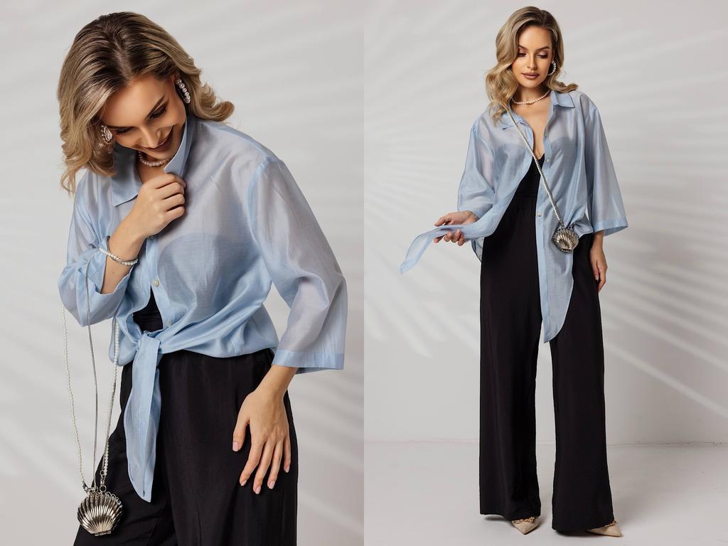 Подробное описание: https://risesv.ru/product/komplekty/104489/ Стильная рубашка свободного силуэта из вуали. Рубашка женская с завязками – базовая вещь в гардеробе для женщин, которые предпочитают уникальность и стиль. Имеет прямой свободный крой и удлиненный перед, который можно эффектно завязывать в узел. Завязками идеально подчеркнуть талию, создавая женственные и элегантные образы.Стильная блузка свободного силуэта . Рукав чуть ниже локтя. Функциональные застежки - пуговицы. Идеально подходит для работы и отдыха. Длина изделия 60 см. Рост модели 170 см.