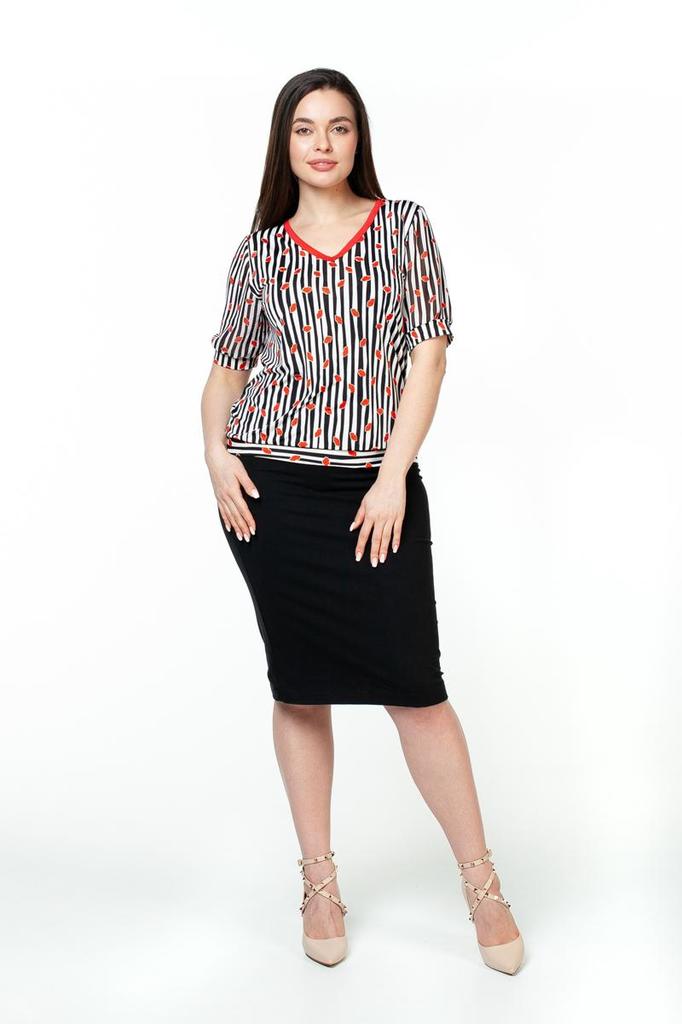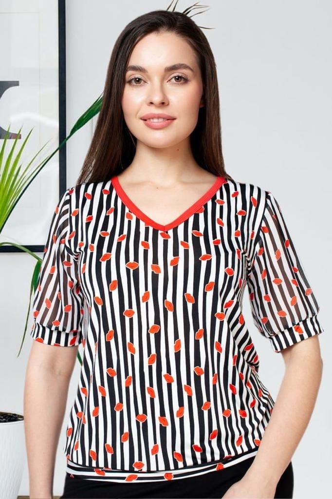 Подробное описание: https://risesv.ru/product/bluzki_tuniki/86210/ Блузка выполнена из трикотажного полотна, рукав короткий - шифон. Элегантно смотрится, легко стирается, не теряет и не меняет цвет. Так как в ткани используется большое количество вискозы, ткань дышащая и легко пропускает воздух, сохраняет форму и посадку даже после многочисленных стирок. Блуза представлена в ярких, современных и модных расцветках. Блузка станет неотъемлемой частью Вашего образа. Блуза прекрасно подходит для торжеств и повседневных мероприятий. Сочетайте блузу с брюками, юбками, и с любым типом обуви. Блузка бренда RISE - это стиль, качество и комфорт! Длина изделия 66-68 см. Рост модели 174 см.