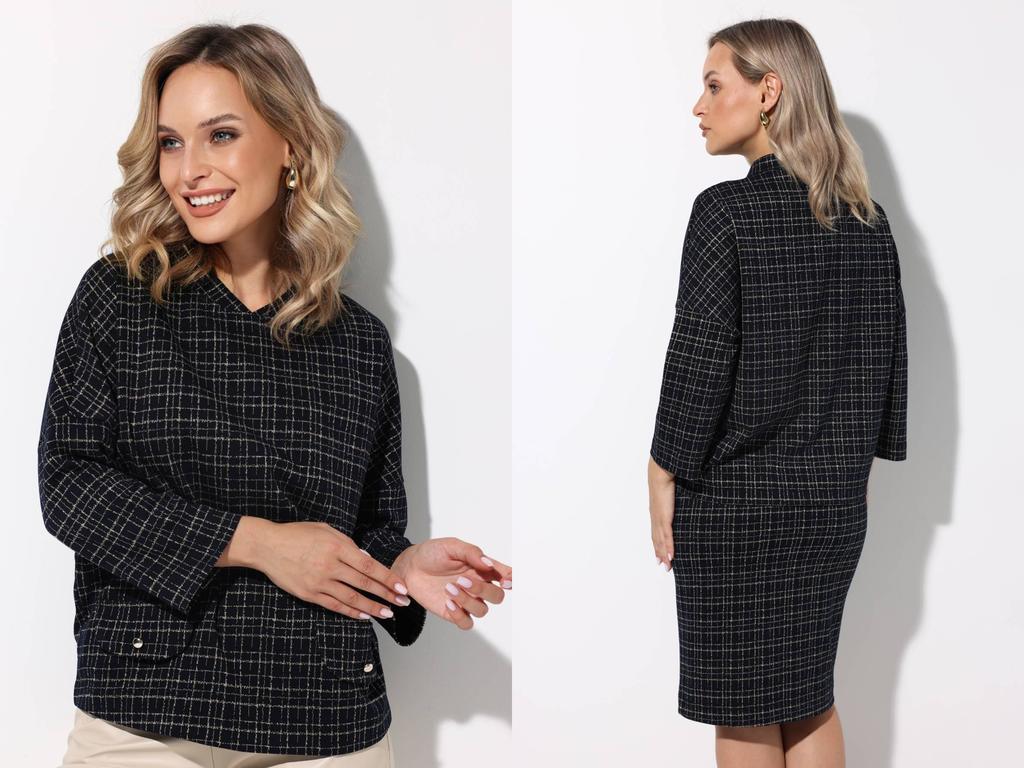 Подробное описание: https://risesv.ru/product/bluzki_tuniki/98329/ Блузка выполнена из буклированного трикотажа в стиле Шанель. Рукав-3/4, втачной. Низ блузки - фигурный. Материал приятен к телу, мягко ложится по любой фигуре, хорошо тянется, не мнется, не сыплется. Прямой свободный крой позволяет легко комбинировать эту модель женской блузки с разными вариантами низа. Дополняйте брюками или юбками в зависимости от повода, носите заправленной или навыпуск. Благодаря длине и продуманному крою блузка зрительно вытягивает силуэт и создает привлекательный женственный образ для торжественного случая или повседневности. Комфортная посадка дарит уверенность и ощущение свободы.