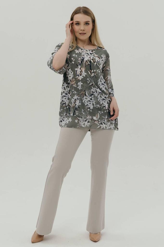 Подробное описание: https://risesv.ru/product/bluzki_tuniki/93674/ Блузка выполнена из трикотажного полотна, рукав - шифон. Элегантно смотрится, легко стирается, не теряет и не меняет цвет. Так как в ткани используется большое количество вискозы, ткань дышащая и легко пропускает воздух, сохраняет форму и посадку даже после многочисленных стирок. Блуза представлена в ярких, современных и модных расцветках. Длина изделия 66-68 см. Рост модели 164 см.