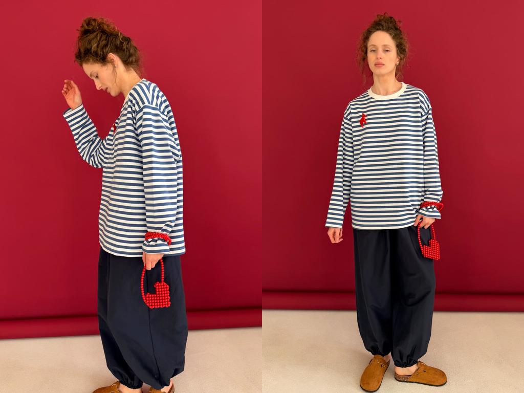 Подробное описание: https://risesv.ru/product/kollektsiya_m_g_all_natural/105974/ Наш бренд M&G all natural создаёт легкую и свободную одежду из натуральных тканей. Все изделия имеют безупречный пошив и идеальную посадку, используются качественные ткани. Блузка - морячка единого размера из мягкого хлопка. Свободный крой блузки не стесняет ваши движения. Хорошо садится на любой тип фигуры. Подойдёт для работы и отдыха. Все изделия уникальны и отшиваются небольшими партиями. Стирка изделий вручную либо использовать машинную стирку в деликатном режиме (не более 30 градусов). Длина блузки 84 см. Рост модели 174 см.