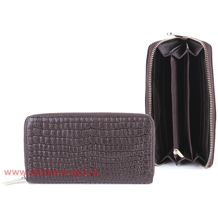 Кошелек женский натуральная кожа 528,  на 1 молнию,  6отд+8карм,   (внутри иск/к)  крокодил матовый coffee 119862Кошелек женский натуральная кожа 528,  на 1 молнию,  6отд+8карм,   (внутри иск/к)  крокодил матовый coffee 119862