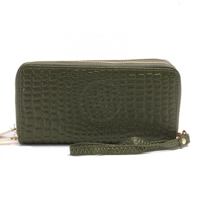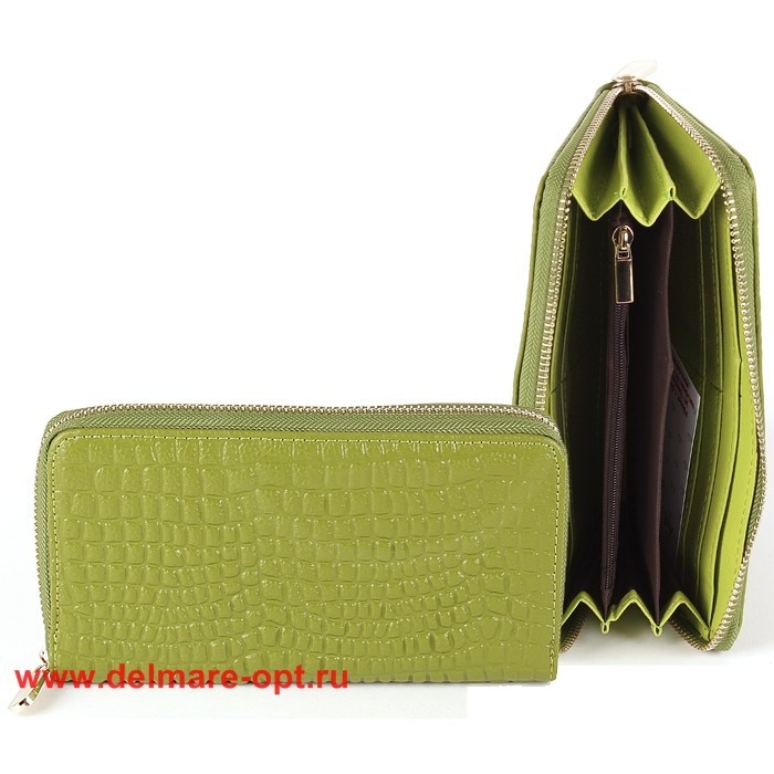 Кошелек женский натуральная кожа 528,  на 1 молнию,  6отд+8карм,   (внутри иск/к)  крокодил матовый зеленый 133945Кошелек женский натуральная кожа 528,  на 1 молнию,  6отд+8карм,   (внутри иск/к)  крокодил матовый зеленый 133945