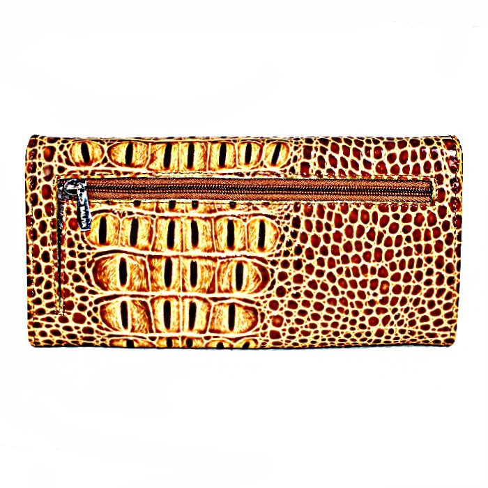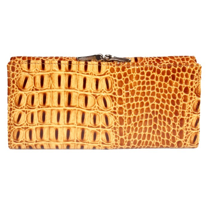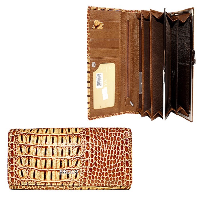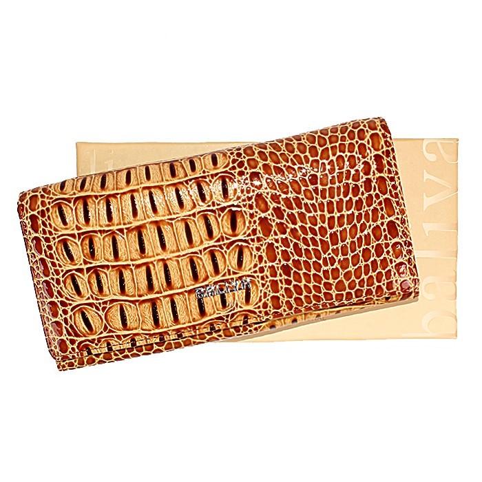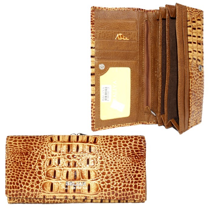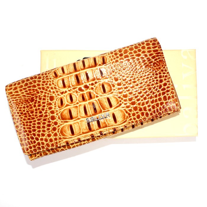 Кошелек женский натуральная кожа Baliya-E 3616-3,  защелка снаружи,  7отд,  9 карм,  крокодил,  рыжий 179870