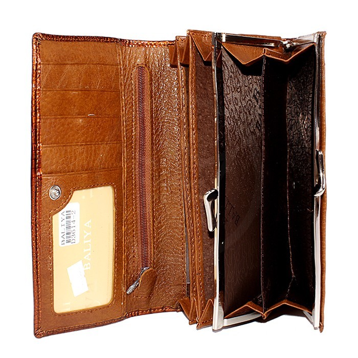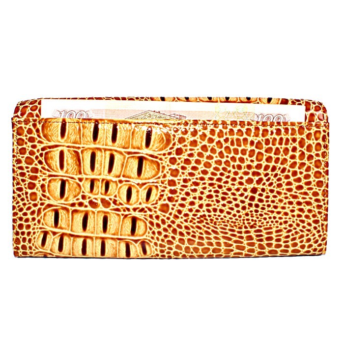 Кошелек женский натуральная кожа Baliya-E 3614-3, защелка внутри, 7отд, 9карм, крокодил, рыжий 179862 Вопросы по товару