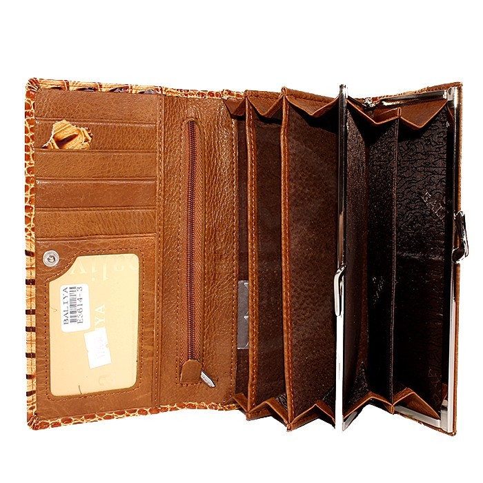 Кошелек женский натуральная кожа Baliya-E 8003-3,  молния внутри,  8отд,  10карм,  крокодил,  бежевый 179856
