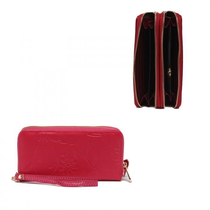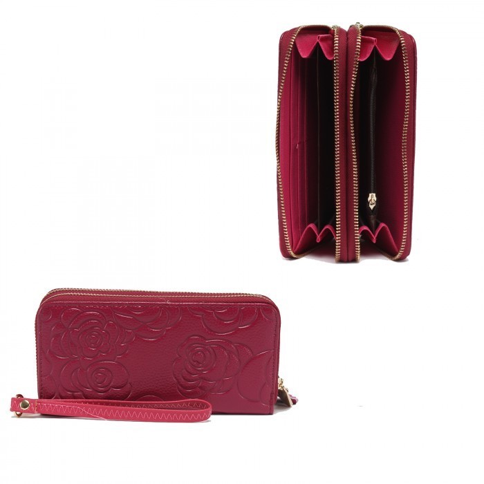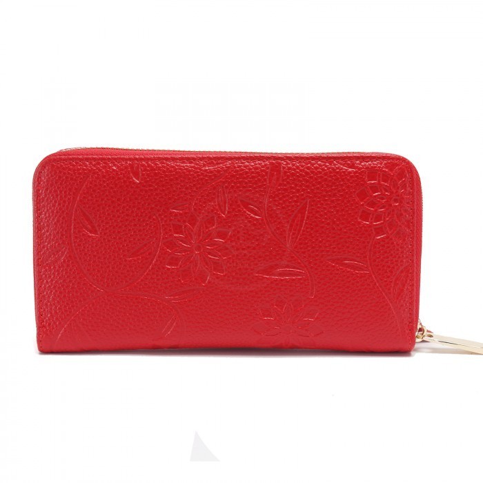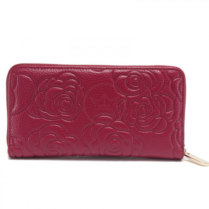 Кошелек женский натуральная кожа 528, на 1 молнию, 6отд+8карм, (внутри иск/к) цветок, красный 221850 Вопросы по товару
