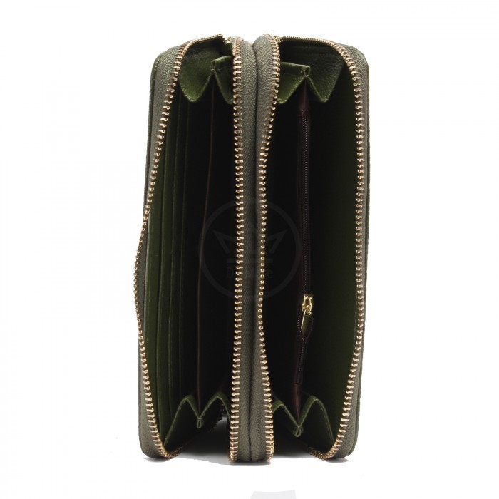 Кошелек женский натуральная кожа 528,  на 1 молнию,  6отд+8карм,   (внутри иск/к)  крокодил матовый зеленый 133945