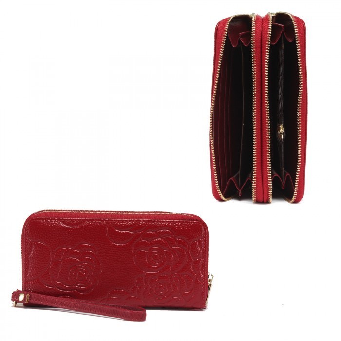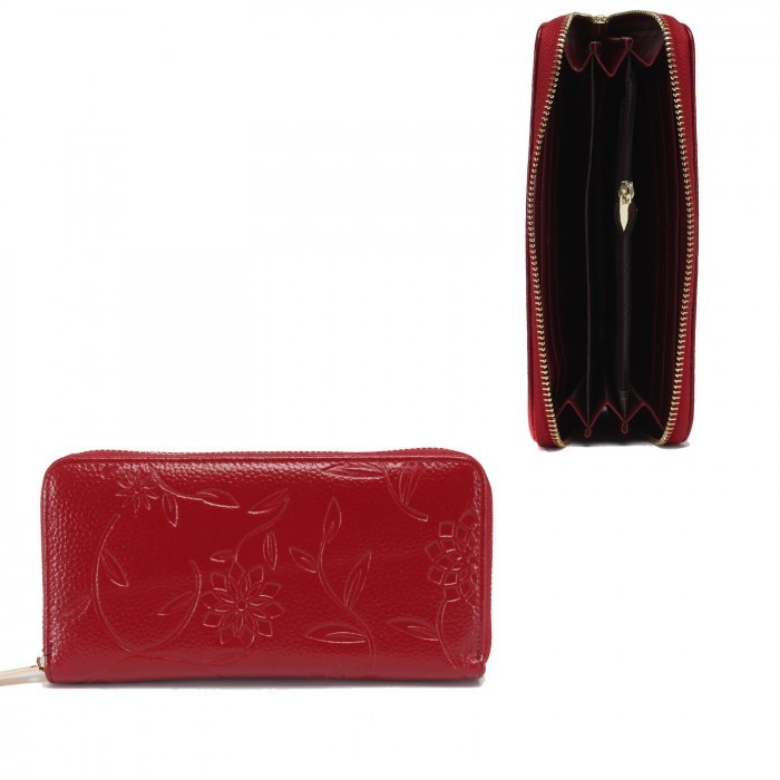 Кошелек женский натуральная кожа 528,  на 1 молнию,  6отд+8карм,   (внутри иск/к)  цветок,  красный 221850Кошелек женский натуральная кожа 528,  на 1 молнию,  6отд+8карм,   (внутри иск/к)  цветок,  красный 221850