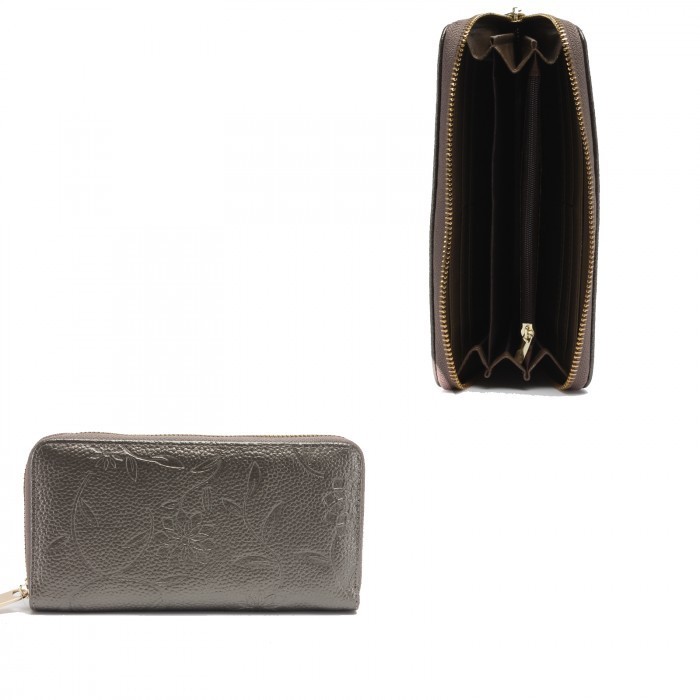 Кошелек женский натуральная кожа 528,  на 1 молнию,  6отд+8карм,   (внутри иск/к)  цветок,  серебро 221853Кошелек женский натуральная кожа 528,  на 1 молнию,  6отд+8карм,   (внутри иск/к)  цветок,  серебро 221853