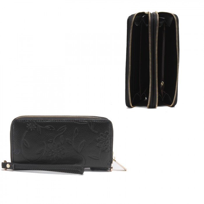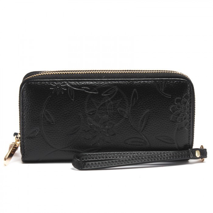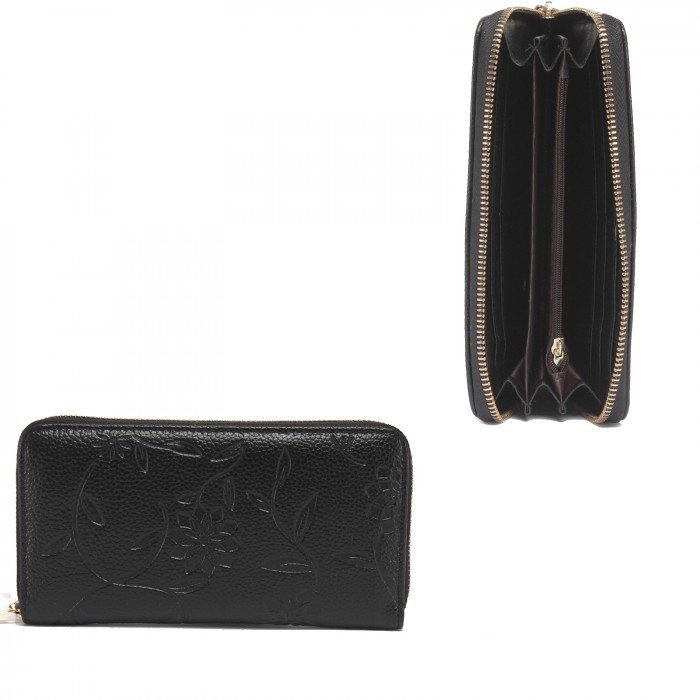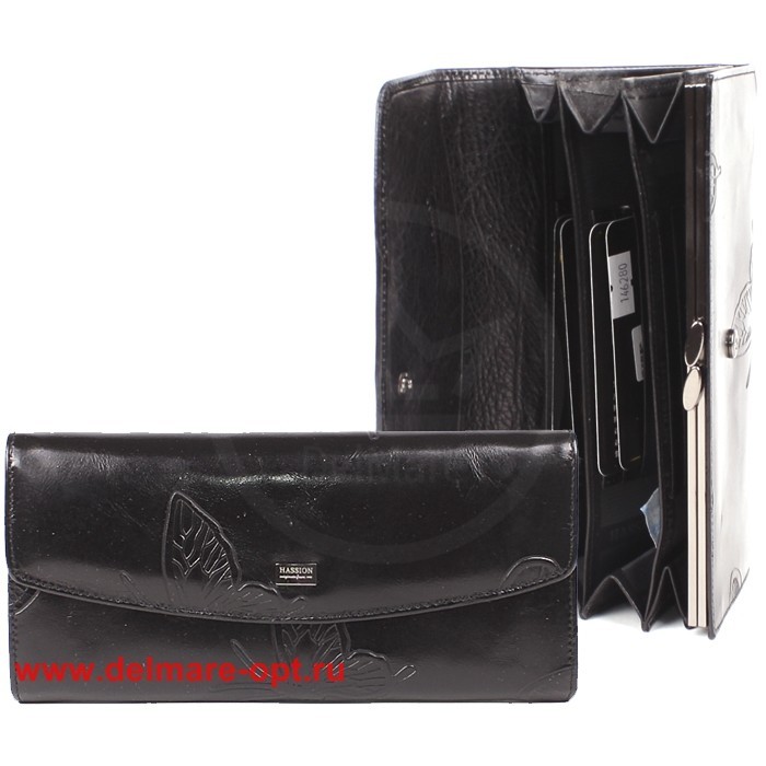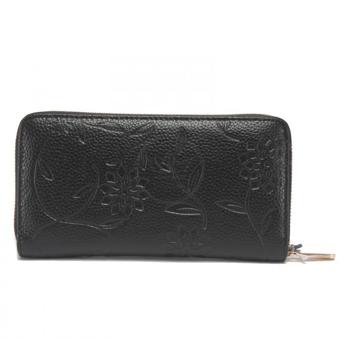 Кошелек женский натуральная кожа 528, на 1 молнию, 6отд+8карм, (внутри иск/к) цветок, черный 221851 Вопросы по товару