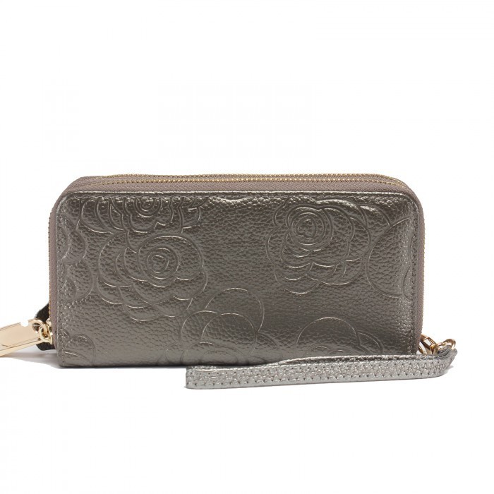 Кошелек женский натуральная кожа 528, на 1 молнию, 6отд+8карм, (внутри иск/к) цветок, серебро 221853 Вопросы по товару
