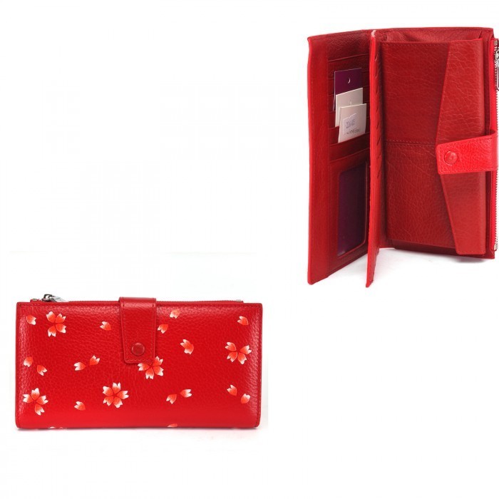 Кошелек женский натуральная кожа Cossni-44953,  на молнии,  5отд,  21карм,  красный/цветочки 226405Кошелек женский натуральная кожа Cossni-44953,  на молнии,  5отд,  21карм,  красный/цветочки 226405