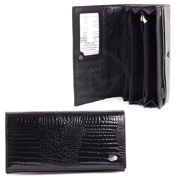 Кошелек женский натуральная кожа Baliya-E 3616-2, защелка снаружи, 7отд, 9 карм, крокодил, черный 179869 Вопросы по товару
