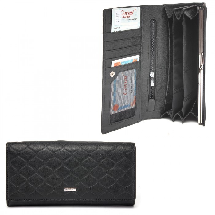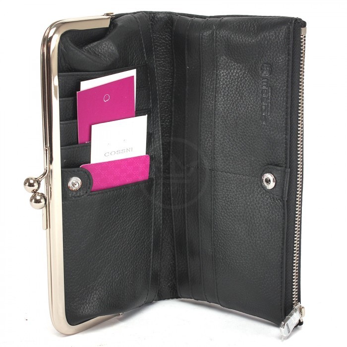 Кошелек женский натуральная кожа Cossni-505920,  защелка внутри,  6отд,  10карм,  черный 224957