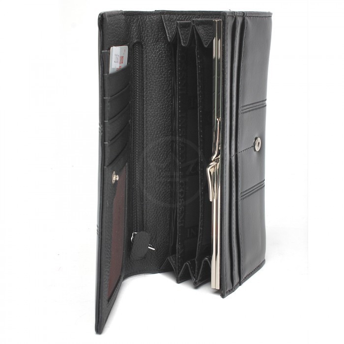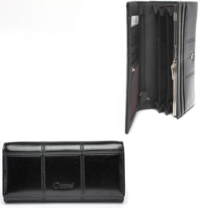 Кошелек женский натуральная кожа Cossni-505912-1,  защелка внутри,  7отд,  10карм,  черный 221567Кошелек женский натуральная кожа Cossni-505912-1,  защелка внутри,  7отд,  10карм,  черный 221567