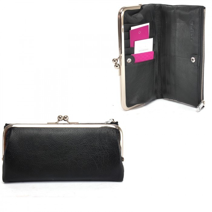 Кошелек женский натуральная кожа Cossni-51337, защелка снаружи, 5отд, 12карм, черный 226396 Вопросы по товару
