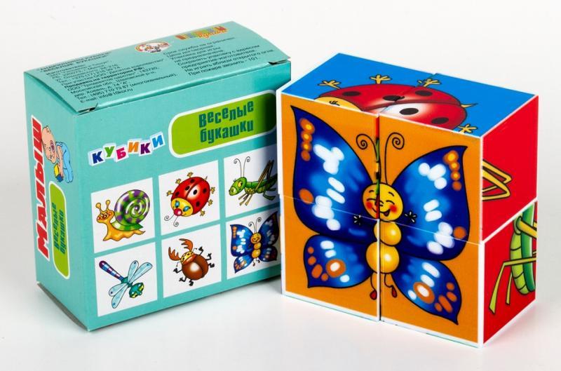 Кубики Малыш Веселые букашки (без обклейки) 4 шт.