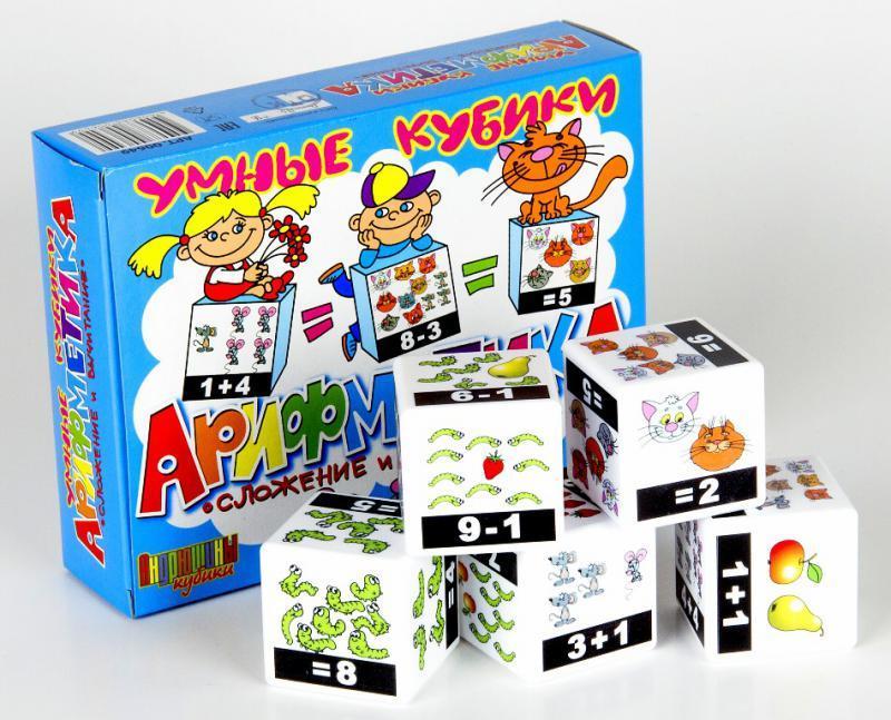 Чтобы малышу было легче усвоить новые для него знания, взрослый должен добиваться от него не автоматического запоминания, а разумного понимания. Если ваш малыш уже запомнил цифры и научился порядковом... Показать описаниеу счету до 10, и пришло время решать примеры на сложение и вычитание, то вместо того, чтобы зубрить наизусть таблицы, воспользуйтесь этой обучающей игрой, которая с вашей помощью объяснит ребенку смысл арифметических действий и научит самостоятельно находить правильные ответы. Кубики изготовлены по новой технологии из ударопрочного полистирола, рисунки и цифры нанесены способом прямой печати, поэтому они долго будут сохранять свой первоначальный вид и радовать малышей. Умные кубики предназначены для занятий с детьми от 3 до 7 лет.