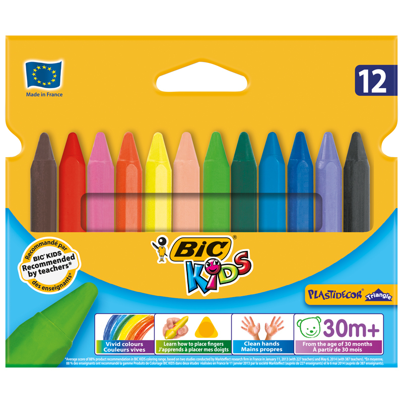Мелки пластиковые Bic "Plastidecor Triangle" 12 цв., трехгранные, картон, европодвес, 829773 Вопросы по товару