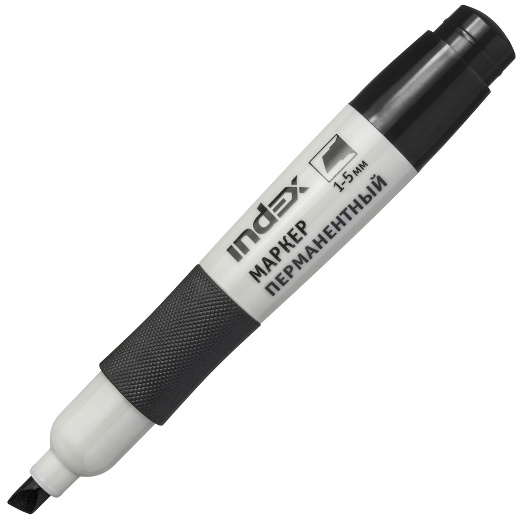 Маркер перманентный с резиновым упором, черный, скошенный наконечник