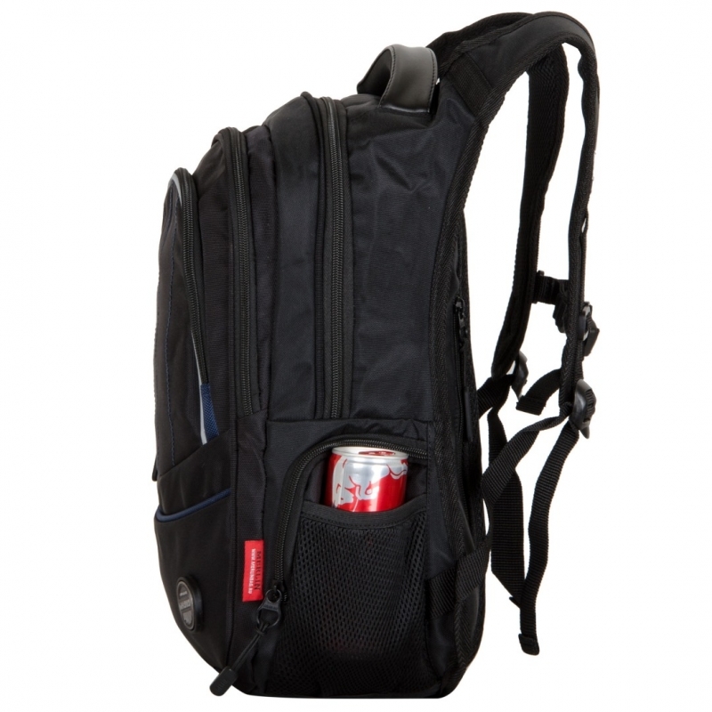 Практичный мужской рюкзак черного цвета идеально подойдет как для города, так и для отдыха. Рюкзак сшит из прочного и непромокаемого материала. Внутреннее отделение вместит в себя не только ноутбук, н... Показать описаниео множество других необходимых вещей. Большое количество различный небольших карманов на молнии позволяет держать под рукой нужные мелочи. На фронтальной части данной модели закреплен прочный пластиковый карабин. Прорезиненная ручка для переноски не скользит во время дождя. Усиленные лямки способны выдержать даже очень большой вес.
