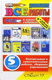 В данном учебном пособии решены и в большинстве случаев подробно разобраны ВСЕ задачи и упражнения по МАТЕМАТИКЕ, РУССКОМУ ЯЗЫКУ, ЛИТЕРАТУРЕ, АНГЛИЙСКОМУ ЯЗЫКУ, НЕМЕЦКОМУ ЯЗЫКУ и ИНФОРМАТИКЕ из всех о... Показать описаниесновных учебников для 5 класса, а также из рабочих тетрадей к этим учебникам. Пособие предназначено родителям, которые смогут помочь своему ребенку в решении домашних заданий, проконтролировать правильность решения задач и степень усвоения материала. При правильном использовании этого учебного пособия родители могут быть домашними репетиторами по всем основным школьным дисциплинам. 3-е издание, стереотипное. Рейтинг на сайте labirint.ru: 6.42. Больше картинок и возможность полистать книгу на странице.