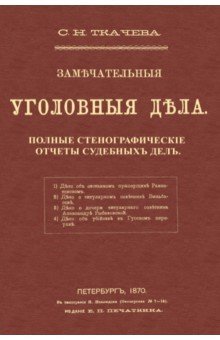 Репринт с издания. Полные стенографческие отчеты судебных дел С. Н. Ткачевой (речи прокуроров, защитников, присяжных, высказывания судей, ответы подсудимых и свидетелей). Содержание: 1. Об отставном п... Показать описаниерапорщике Разнатовском, 2. О титулярном советнике Бильбасове, 3. О дочери титулярного советника Александре Рыбаковской, 4. Об убийстве в Гусевом переулке. Воспроизведено в оригинальной авторской орфографии издания 1870 года (издательство "Санкт-Петербург, Е. П. Печаткин"). Книга изготовлена по технологии "печать по требованию". Тираж 30 экз.
