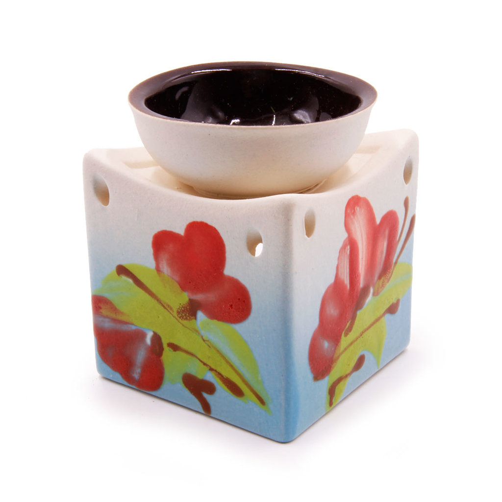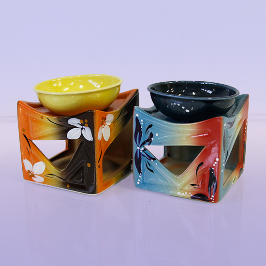 Аромалампа в виде расписного кувшинчика станет стильным украшением интерьера и подарит прекрасные ароматы атмосфере дома. Стилизованная форма обладает эстетической притягательностью и яркой индивидуал... Показать описаниеьностью. Мягкие изогнутые очертания лампы в сочетании с живым пламенем свечи создают удивительно спокойное и уравновешенное настроение. Яркие сочные цвета ручной росписи идеально сочетаются с формой. Такая тональность цветовой гаммы имеет позитивное психологическое воздействие. Аро малампа - один из основных инструментов ароматерапии. Аромалампы состоят из двух основных частей - чаши для масла и арки. Правила использования аромалампы предельно просты. В чашу заливают небольшое количество воды и капают совсем немного эфирного масла. Свечу-таблетку зажигают и ставят внутрь арки. Использовать аромалампу стоит во многих случаях. Она не только поможет создать романтическою атмосферу. Также эфирные масла помогают снять напряжение и расслабиться. Выбирайте аромалампу исходя из своих вкусов и предпочтений.