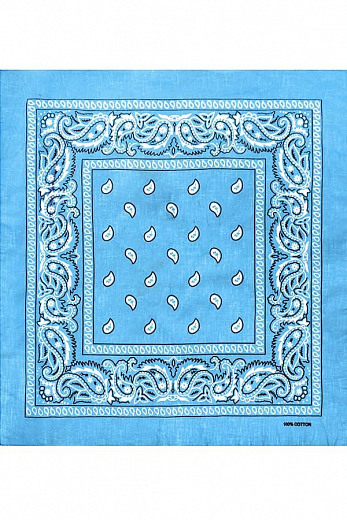 Товарная группа: Бандана. Бренд: Light. Модель: Paisley Acrylic 55х55 см. ЦВЕТ: голубой. ОПИСАНИЕ: Бандана (bandhana — повязывать) — головной убор в виде косынки или платка большого размера. Традицион... Показать описаниено банданы изготавливаются из разноцветной ткани с узорами. Банданы повязывают как на лоб, так и вокруг шеи (шейный платок).. Современные банданы бывают самых разнообразных цветов и оттенков, сочетая при этом абстрактные рисунки, логотипы, надписи, узоры, символические знаки и многое другое.. Материал: 100% акрил - синтетическая ткань.. Размер приблизительно 55 х 55 сантиметров ( допустимое отклонение +-1-2 см ). Классический узор Paisley ( Пейсли ) или огурцы.