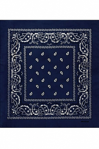 Товарная группа: Бандана. Бренд: Classic. Модель: Paisley Cotton 55х55 см. ЦВЕТ: тёмно-синий. ОПИСАНИЕ: Бандана (bandhana — повязывать) — головной убор в виде косынки или платка большого размера. Трад... Показать описаниеиционно банданы изготавливаются из разноцветной ткани с узорами. Банданы повязывают как на лоб, так и вокруг шеи (шейный платок).. Современные банданы бывают самых разнообразных цветов и оттенков, сочетая при этом абстрактные рисунки, логотипы, надписи, узоры, символические знаки и многое другое.. Настоящий 100% хлопок. Приятен на ощупь, мягок, отлично впитывает влагу, «дышит» и при этом хорошо держит тепло.. Печать проходит через обе стороны. Насыщенные цвета с двух сторон.. Размер приблизительно 55 х 55 сантиметров ( допустимое отклонение +-1-2 см ). Классический узор Paisley ( Пейсли ) или огурцы.
