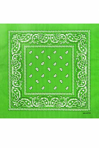 Товарная группа: Бандана. Бренд: Light. Модель: Paisley Acrylic 55х55 см. ЦВЕТ: светло-зелёный. ОПИСАНИЕ: Бандана (bandhana — повязывать) — головной убор в виде косынки или платка большого размера. Тр... Показать описаниеадиционно банданы изготавливаются из разноцветной ткани с узорами. Банданы повязывают как на лоб, так и вокруг шеи (шейный платок).. Современные банданы бывают самых разнообразных цветов и оттенков, сочетая при этом абстрактные рисунки, логотипы, надписи, узоры, символические знаки и многое другое.. Материал: 100% акрил - синтетическая ткань.. Размер приблизительно 55 х 55 сантиметров ( допустимое отклонение +-1-2 см ). Классический узор Paisley ( Пейсли ) или огурцы.