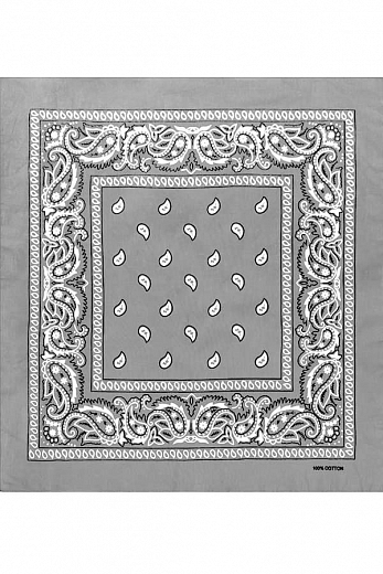 Товарная группа: Бандана. Бренд: Classic. Модель: Paisley Cotton 55х55 см. ЦВЕТ: серый. ОПИСАНИЕ: Бандана (bandhana — повязывать) — головной убор в виде косынки или платка большого размера. Традиционн... Показать описаниео банданы изготавливаются из разноцветной ткани с узорами. Банданы повязывают как на лоб, так и вокруг шеи (шейный платок).. Современные банданы бывают самых разнообразных цветов и оттенков, сочетая при этом абстрактные рисунки, логотипы, надписи, узоры, символические знаки и многое другое.. Настоящий 100% хлопок. Приятен на ощупь, мягок, отлично впитывает влагу, «дышит» и при этом хорошо держит тепло.. Печать проходит через обе стороны. Насыщенные цвета с двух сторон.. Размер приблизительно 55 х 55 сантиметров ( допустимое отклонение +-1-2 см ). Классический узор Paisley ( Пейсли ) или огурцы.