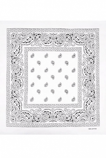 Товарная группа: Бандана. Бренд: Classic. Модель: Paisley Cotton 55х55 см. ЦВЕТ: белый. ОПИСАНИЕ: Бандана (bandhana — повязывать) — головной убор в виде косынки или платка большого размера. Традиционн... Показать описаниео банданы изготавливаются из разноцветной ткани с узорами. Банданы повязывают как на лоб, так и вокруг шеи (шейный платок).. Современные банданы бывают самых разнообразных цветов и оттенков, сочетая при этом абстрактные рисунки, логотипы, надписи, узоры, символические знаки и многое другое.. Настоящий 100% хлопок. Приятен на ощупь, мягок, отлично впитывает влагу, «дышит» и при этом хорошо держит тепло.. Печать проходит через обе стороны. Насыщенные цвета с двух сторон.. Размер приблизительно 55 х 55 сантиметров ( допустимое отклонение +-1-2 см ). Классический узор Paisley ( Пейсли ) или огурцы.