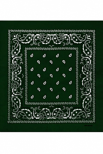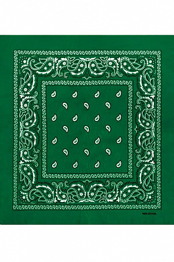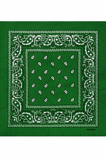 Товарная группа: Бандана. Бренд: Classic. Модель: Paisley Cotton 55х55 см. ЦВЕТ: тёмный весенне-зелёный. ОПИСАНИЕ: Бандана (bandhana — повязывать) — головной убор в виде косынки или платка большого ра... Показать описаниезмера. Традиционно банданы изготавливаются из разноцветной ткани с узорами. Банданы повязывают как на лоб, так и вокруг шеи (шейный платок).. Современные банданы бывают самых разнообразных цветов и оттенков, сочетая при этом абстрактные рисунки, логотипы, надписи, узоры, символические знаки и многое другое.. Настоящий 100% хлопок. Приятен на ощупь, мягок, отлично впитывает влагу, «дышит» и при этом хорошо держит тепло.. Печать проходит через обе стороны. Насыщенные цвета с двух сторон.. Размер приблизительно 55 х 55 сантиметров ( допустимое отклонение +-1-2 см ). Классический узор Paisley ( Пейсли ) или огурцы.