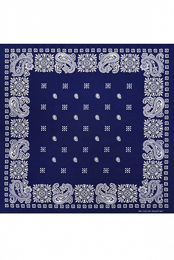 Товарная группа: Бандана. Бренд: Designed in USA. Модель: Paisley Square pattern 55х55 см. ЦВЕТ: тёмно-синий. ОПИСАНИЕ: Бандана (bandhana — повязывать) — головной убор в виде косынки или платка большо... Показать описаниего размера. Традиционно банданы изготавливаются из разноцветной ткани с узорами. Банданы повязывают как на лоб, так и вокруг шеи (шейный платок).. Современные банданы бывают самых разнообразных цветов и оттенков, сочетая при этом абстрактные рисунки, логотипы, надписи, узоры, символические знаки и многое другое.. Банданы Designed in USA. Происхождение бренда: США. Производство: КНР. Материал: 100% хлопок.. Длина: 55 см.. Ширина: 55 см