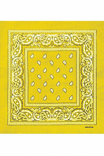 Товарная группа: Бандана. Бренд: Classic. Модель: Paisley Cotton 55х55 см. ЦВЕТ: жёлтый. ОПИСАНИЕ: Бандана (bandhana — повязывать) — головной убор в виде косынки или платка большого размера. Традицион... Показать описаниено банданы изготавливаются из разноцветной ткани с узорами. Банданы повязывают как на лоб, так и вокруг шеи (шейный платок).. Современные банданы бывают самых разнообразных цветов и оттенков, сочетая при этом абстрактные рисунки, логотипы, надписи, узоры, символические знаки и многое другое.. Настоящий 100% хлопок. Приятен на ощупь, мягок, отлично впитывает влагу, «дышит» и при этом хорошо держит тепло.. Печать проходит через обе стороны. Насыщенные цвета с двух сторон.. Размер приблизительно 55 х 55 сантиметров ( допустимое отклонение +-1-2 см ). Классический узор Paisley ( Пейсли ) или огурцы.