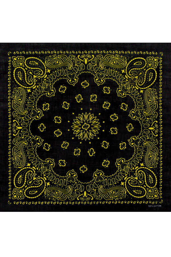 Товарная группа: Бандана. Бренд: Designed in USA. Модель: Black Paisley Сircular pattern 55х55 см. ЦВЕТ: чёрно-жёлтый. ОПИСАНИЕ: Бандана (bandhana — повязывать) — головной убор в виде косынки или плат... Показать описаниека большого размера. Традиционно банданы изготавливаются из разноцветной ткани с узорами. Банданы повязывают как на лоб, так и вокруг шеи (шейный платок).. Современные банданы бывают самых разнообразных цветов и оттенков, сочетая при этом абстрактные рисунки, логотипы, надписи, узоры, символические знаки и многое другое.. Банданы Designed in USA. Происхождение бренда: США. Производство: КНР. Материал: 100% хлопок.. Длина: 55 см.. Ширина: 55 см