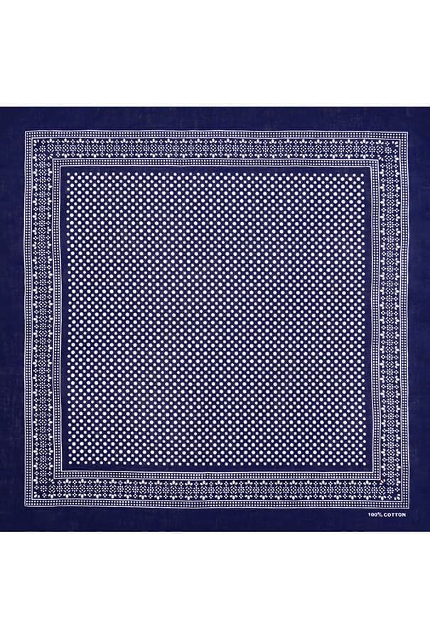 Товарная группа: Бандана. Бренд: Designed in USA. Модель: Dot pattern 55х55 см. ЦВЕТ: тёмно-синий. ОПИСАНИЕ: Бандана (bandhana — повязывать) — головной убор в виде косынки или платка большого размера.... Показать описание Традиционно банданы изготавливаются из разноцветной ткани с узорами. Банданы повязывают как на лоб, так и вокруг шеи (шейный платок).. Современные банданы бывают самых разнообразных цветов и оттенков, сочетая при этом абстрактные рисунки, логотипы, надписи, узоры, символические знаки и многое другое.. Банданы Designed in USA. Происхождение бренда: США. Производство: КНР. Материал: 100% хлопок.. Длина: 55 см.. Ширина: 55 см