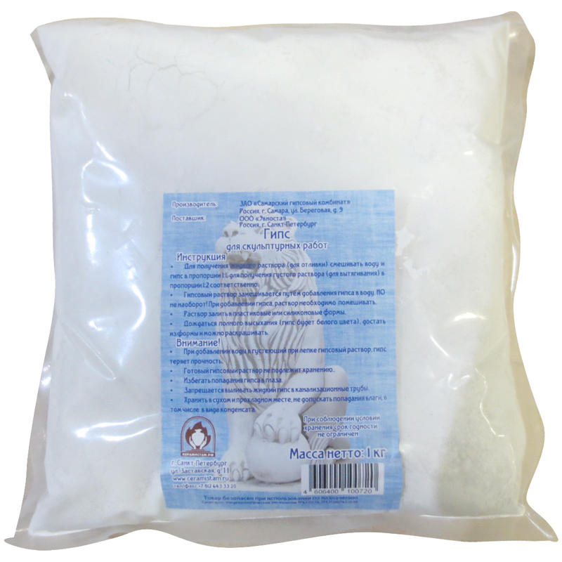 Гипс для скульптурных работ, белый, 1кг, вакуумный пакет, МГП-032-002 Вопросы по товару