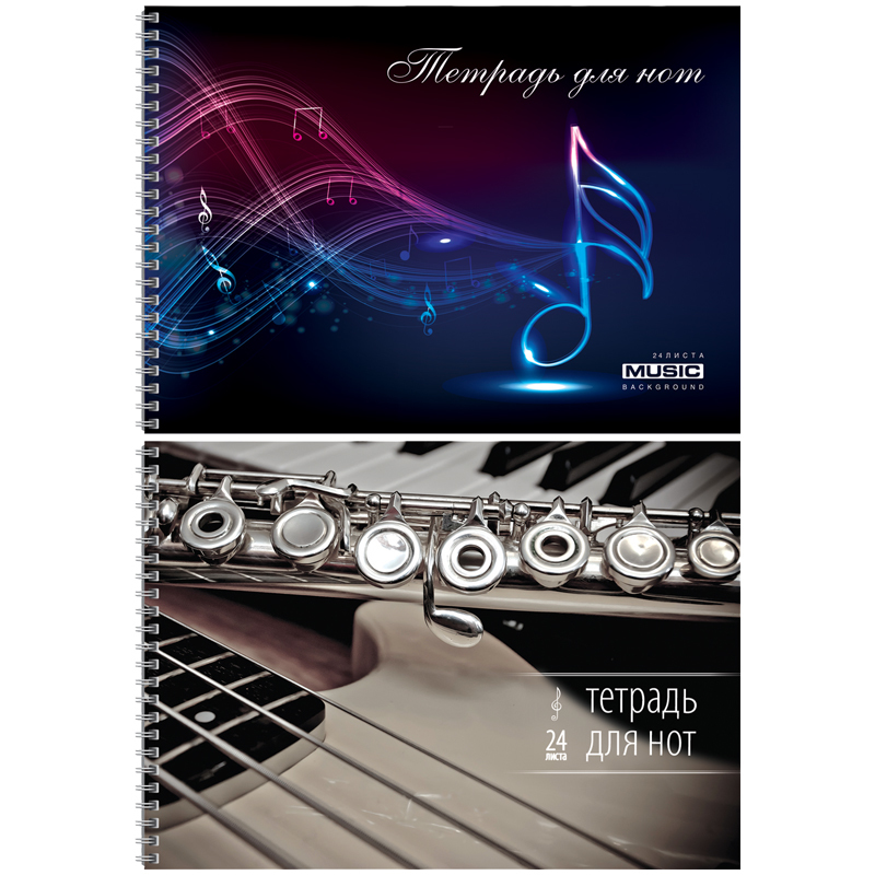 Тетрадь для нот 24л., А4, гребень мелов "Яркие аккорды" (гориз.) в ассортименте (4диз.), BG 6956 Вопросы по товару