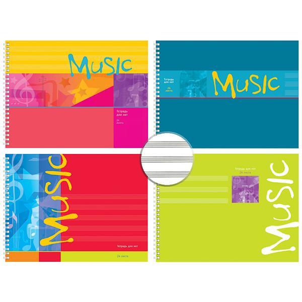 Тетрадь для нот 24л., А4, гребень мелов "Яркие аккорды" (гориз.) в ассортименте (4диз.), BG 6956
