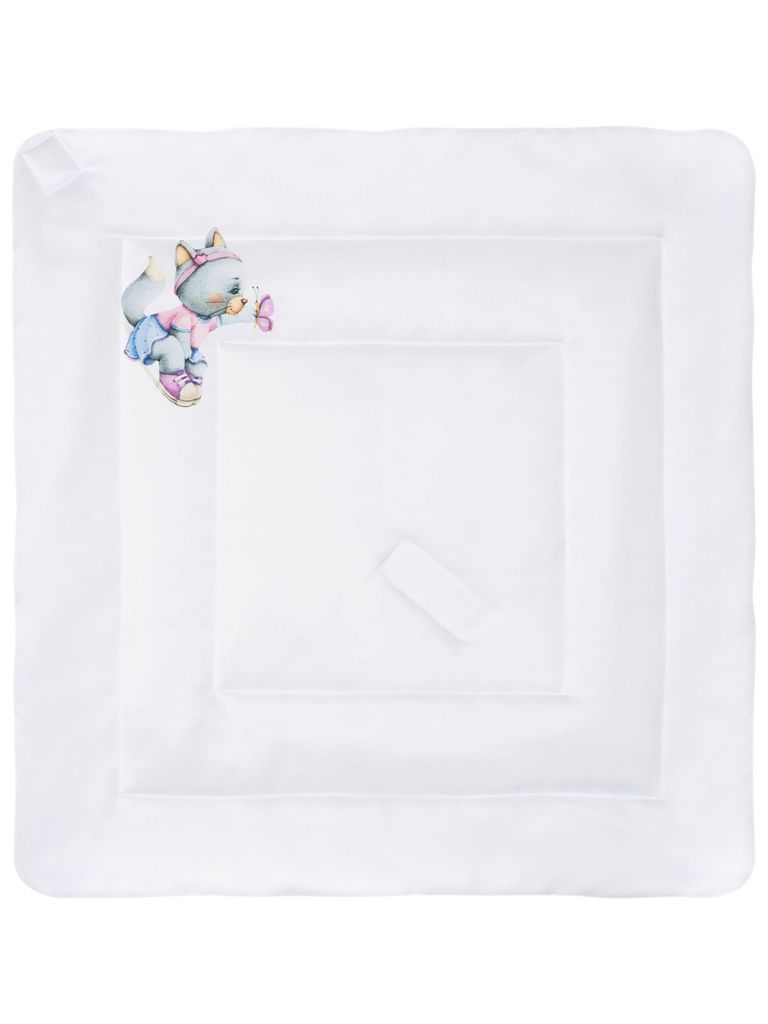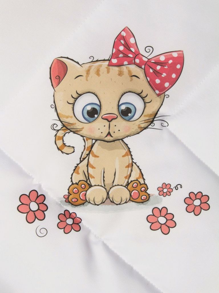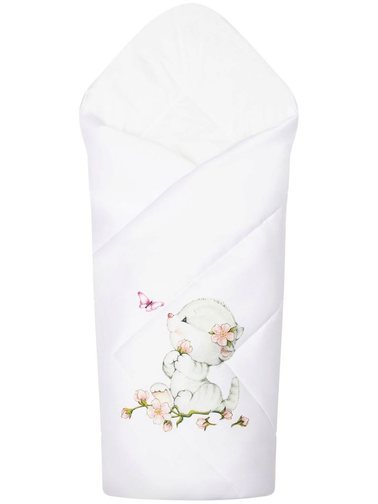 Зимний конверт-одеяло на выписку "Милая киска" (белое, принт без кружева) без пледаВопросы по товару