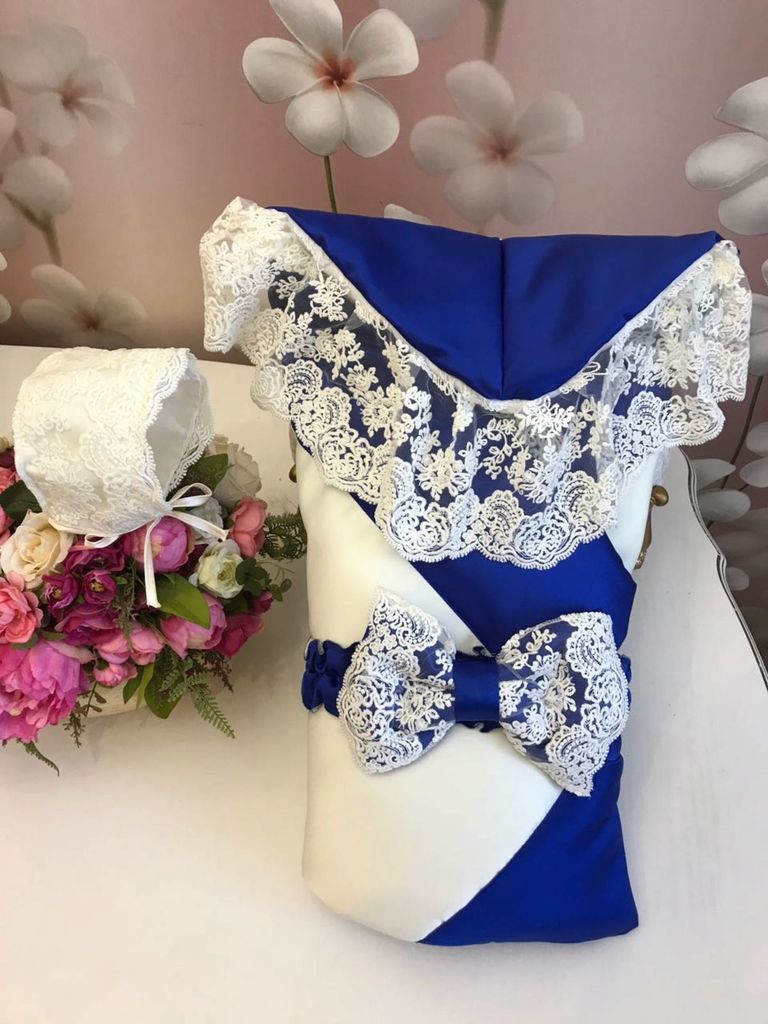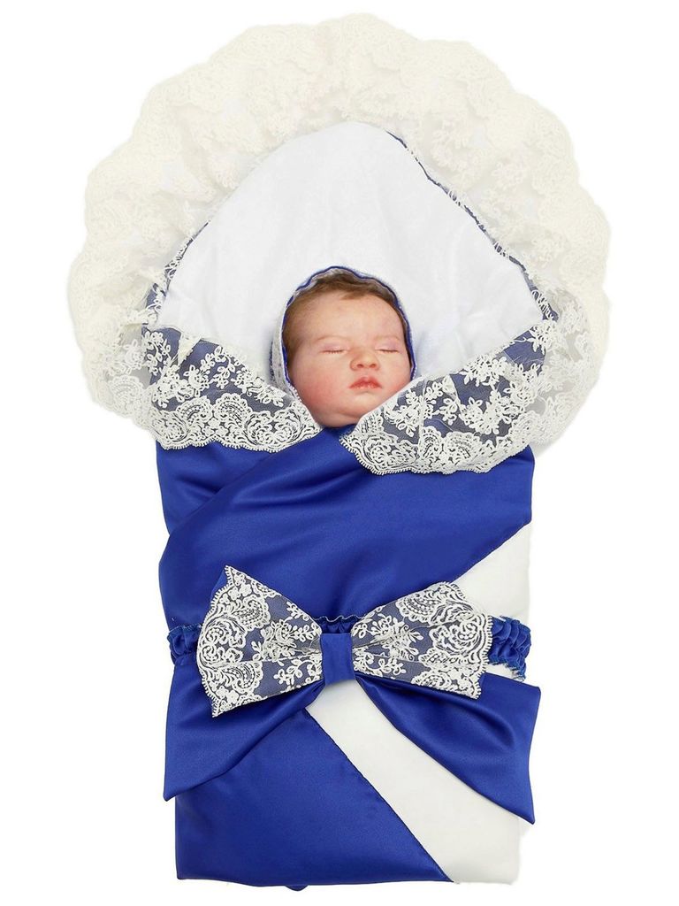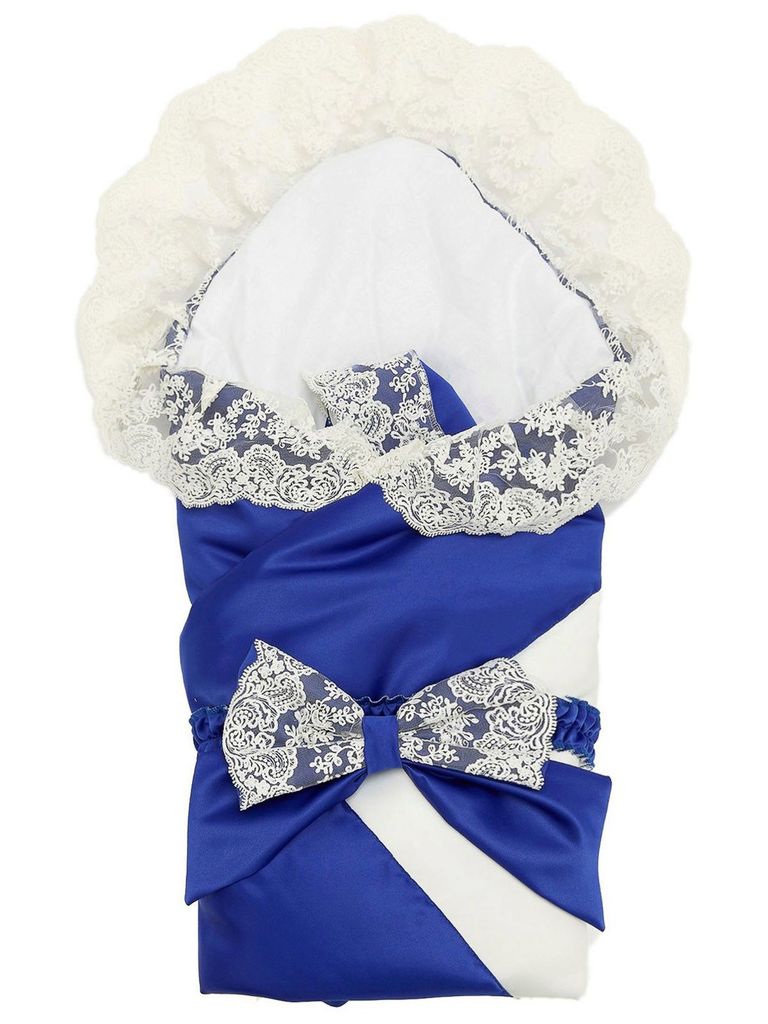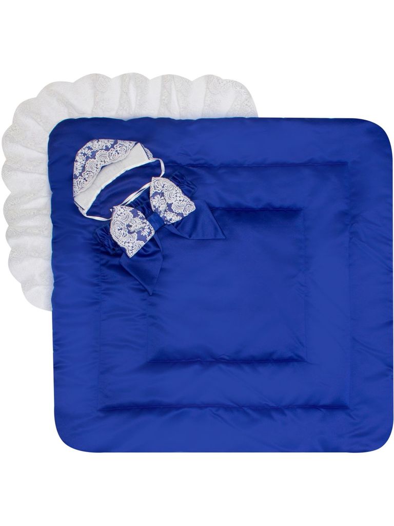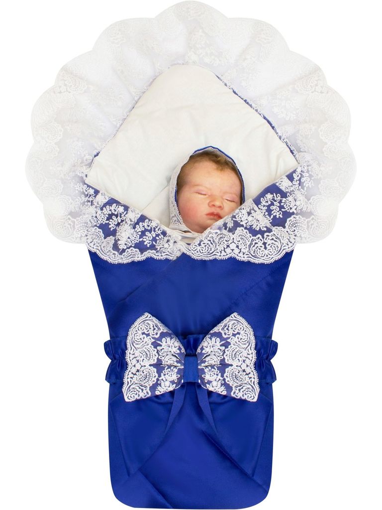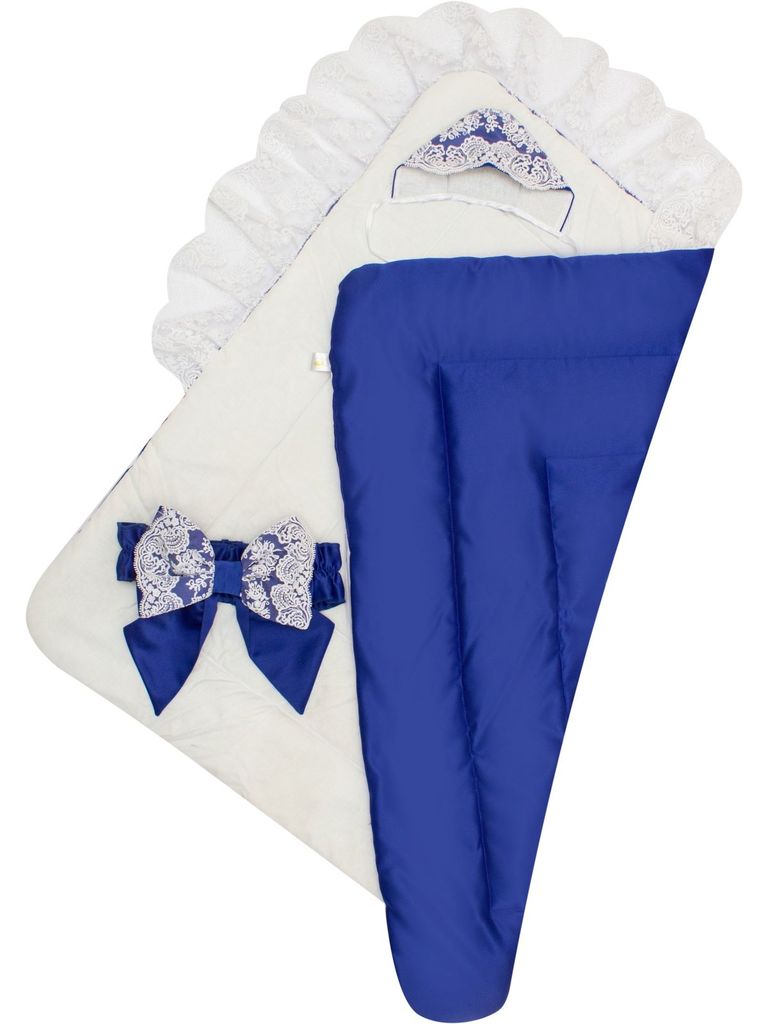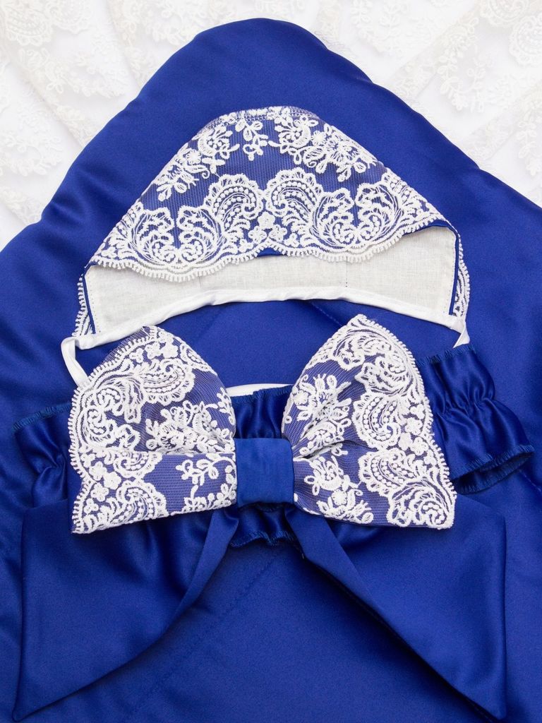 Зимний конверт-одеяло на выписку "Венеция" (синий с белым кружевом) без пледаВопросы по товару