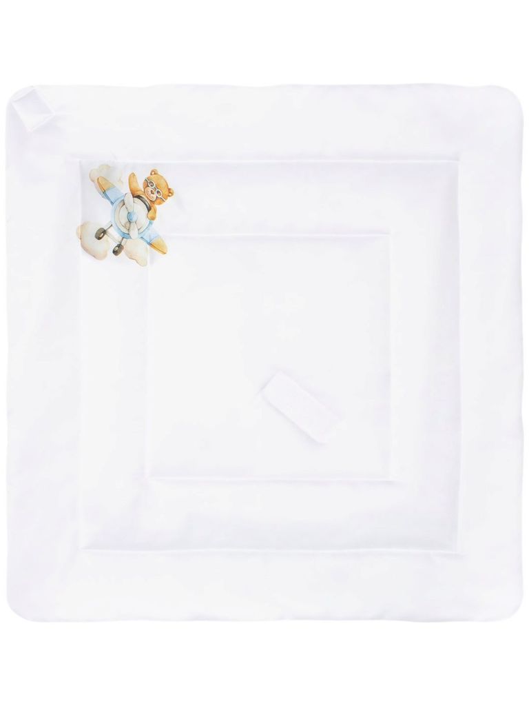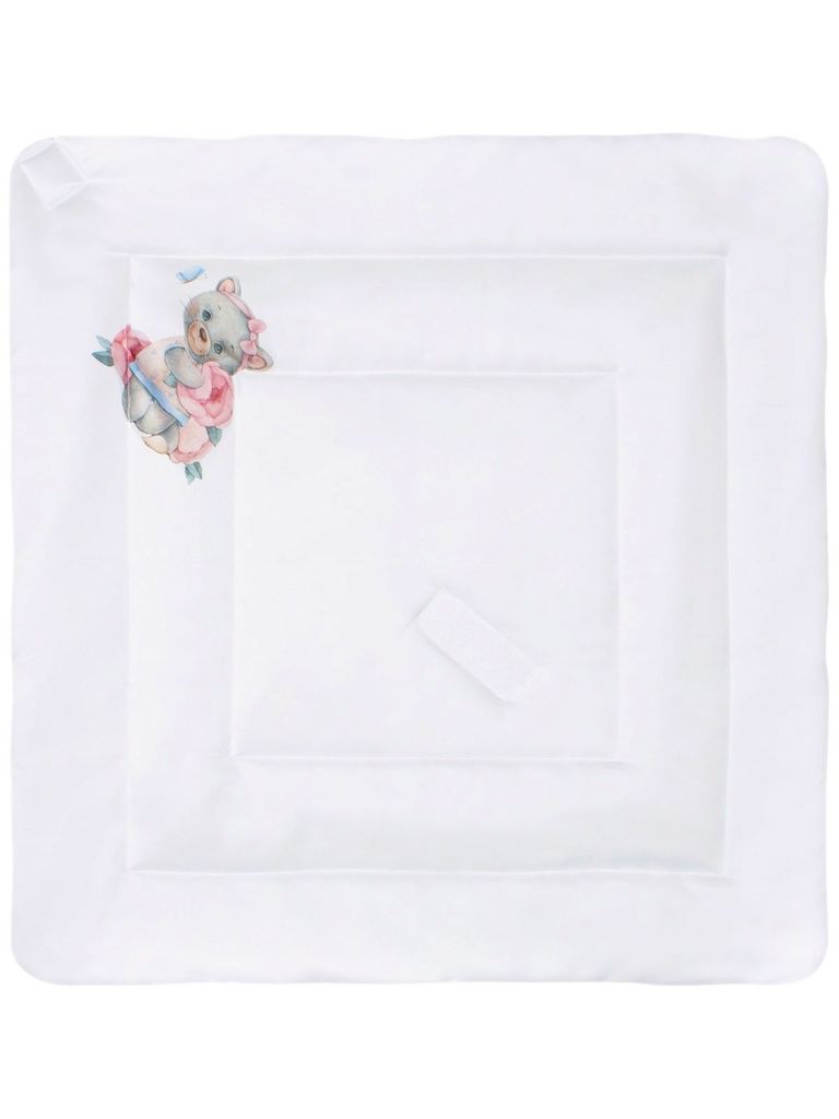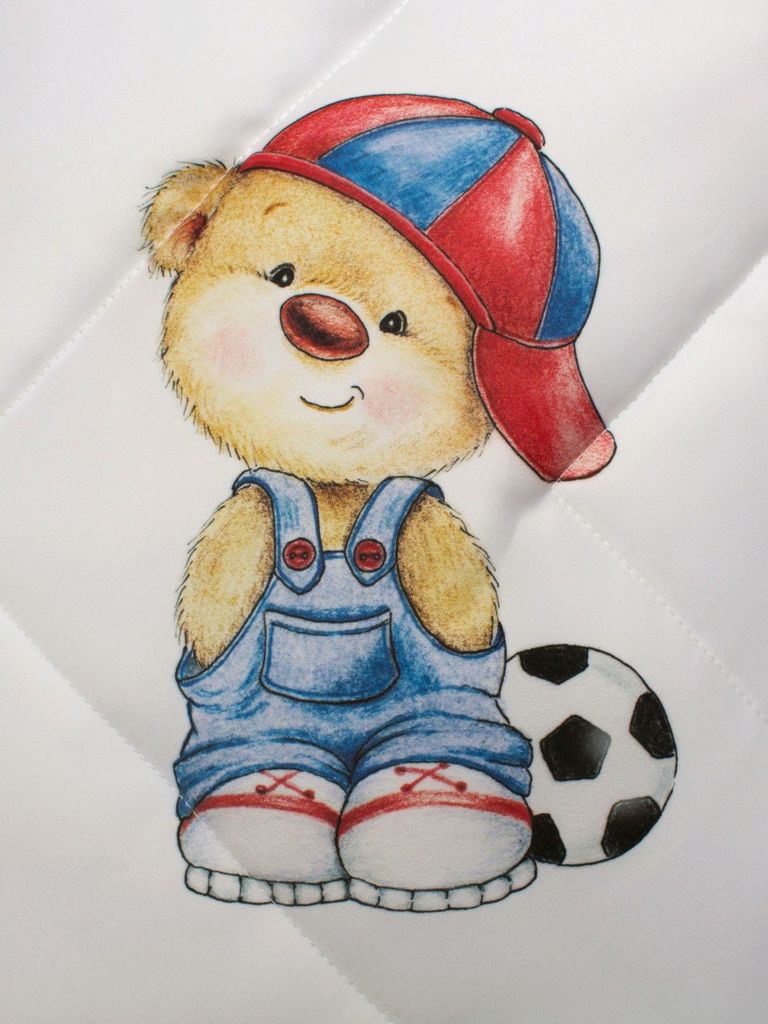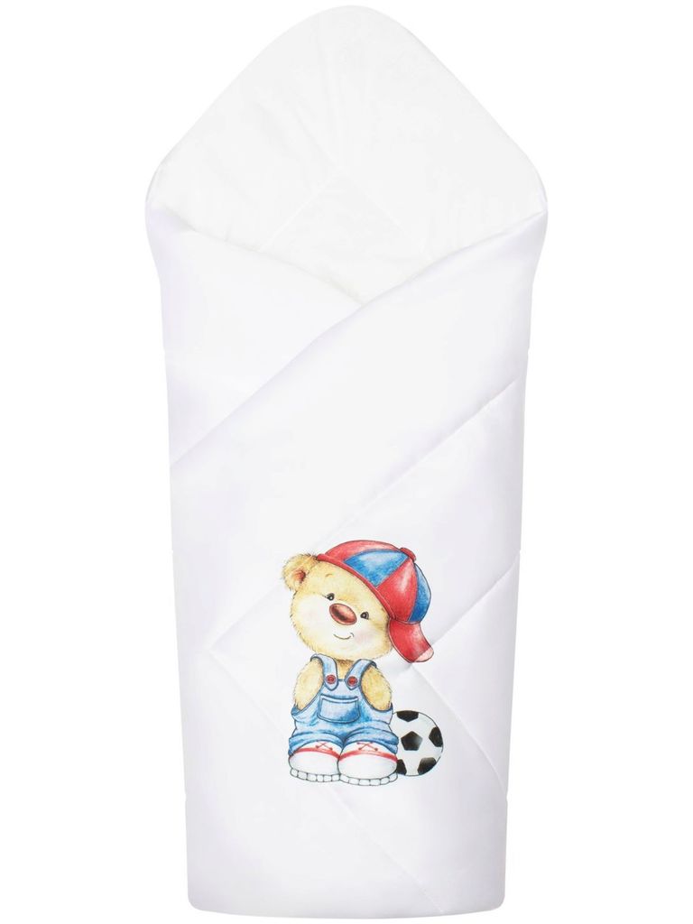 Зимний конверт-одеяло на выписку "Мишка с мячиком" (белое, принт без кружева) без пледаВопросы по товару