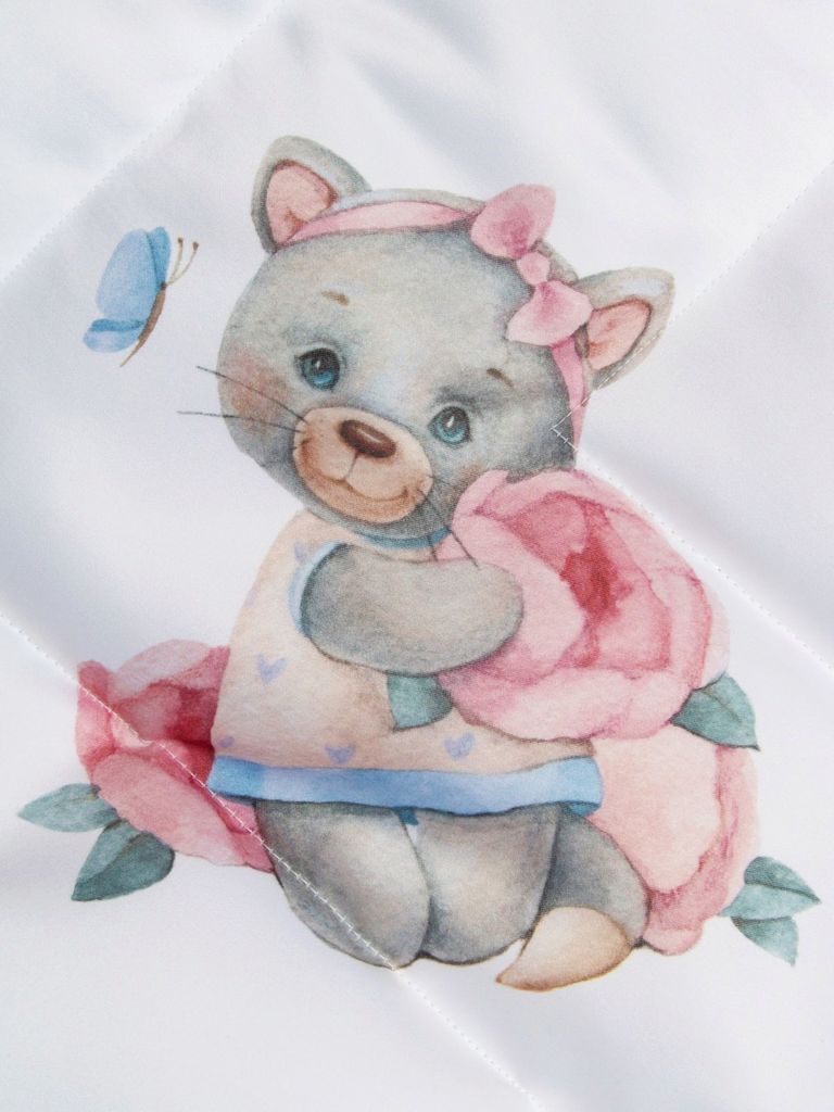 Зимний конверт-одеяло на выписку "Киска с бабочкой" (белое, принт без кружева) без пледаВопросы по товару