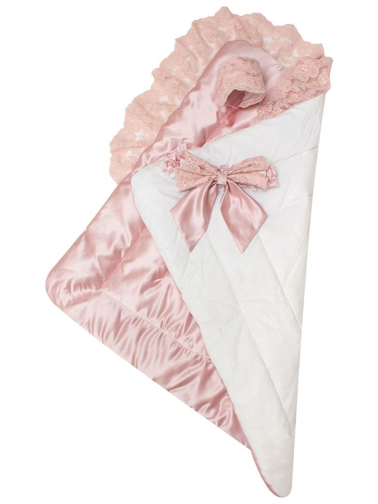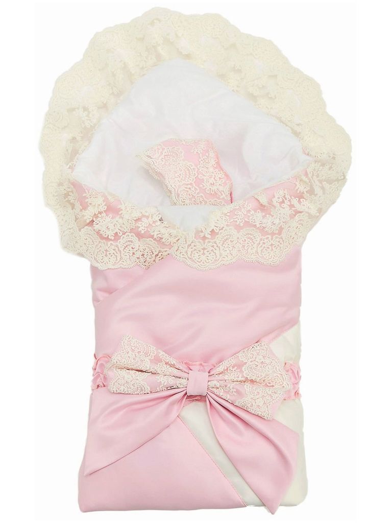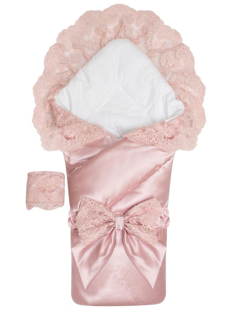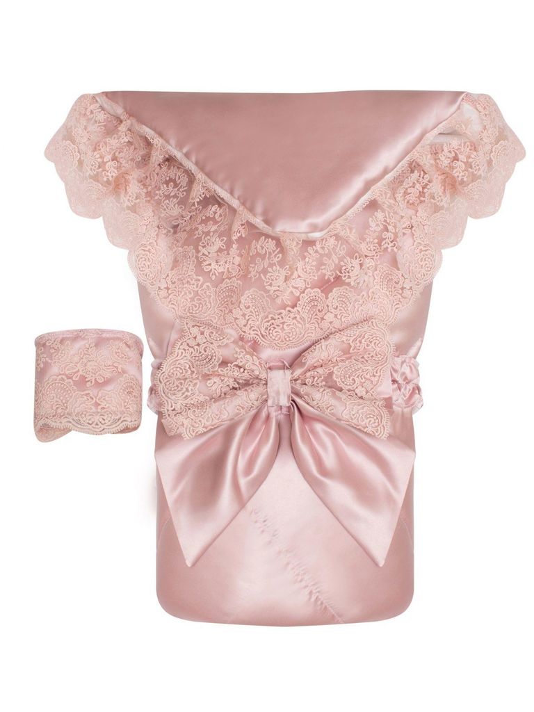 Зимний конверт-одеяло на выписку "Венеция" атлас (нежно розовый с розовым кружевом) без пледаВопросы по товару