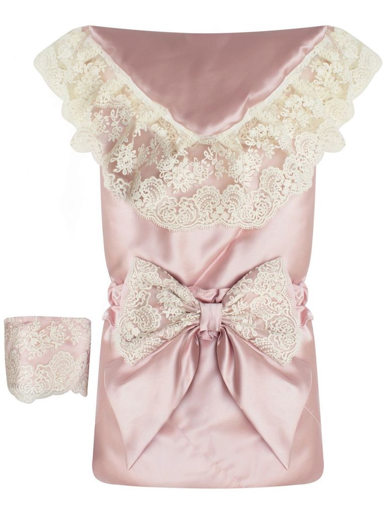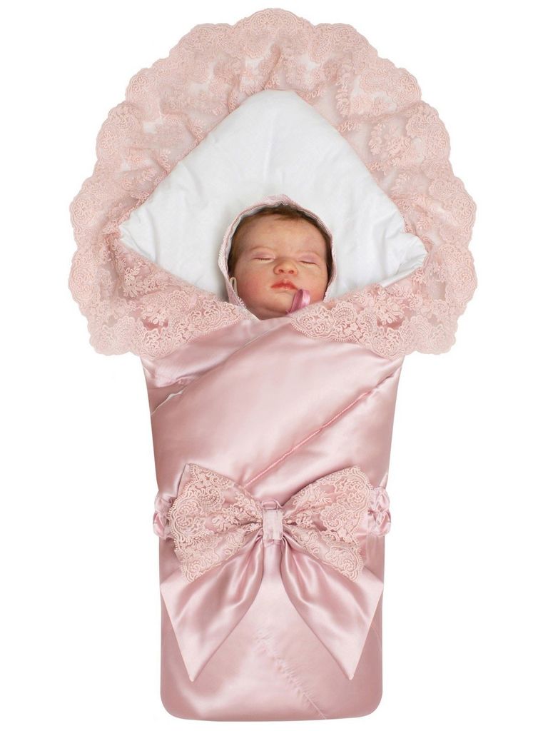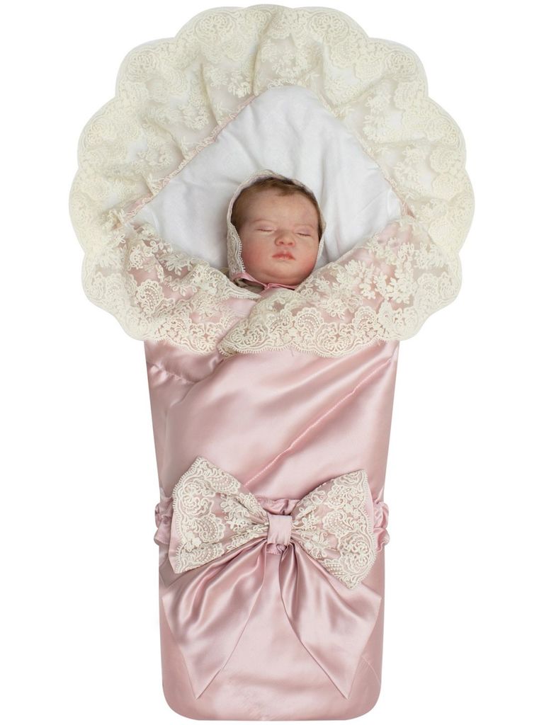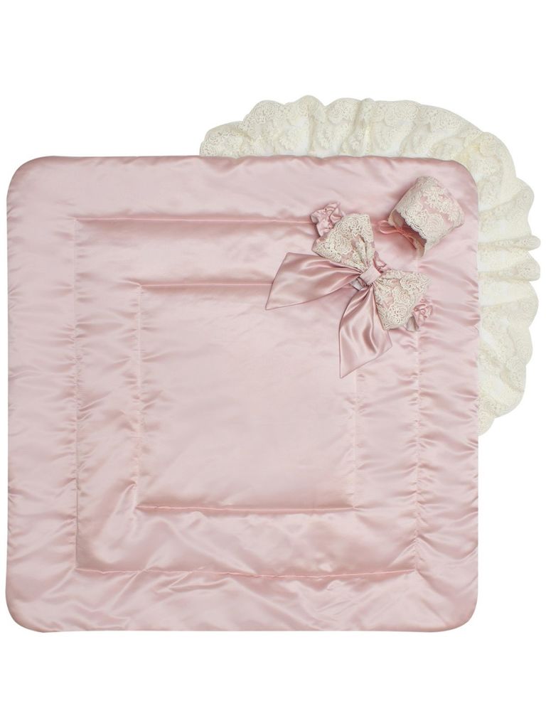 Зимний конверт-одеяло на выписку "Венеция" атлас (нежно розовый с розовым кружевом) без пледаВопросы по товару