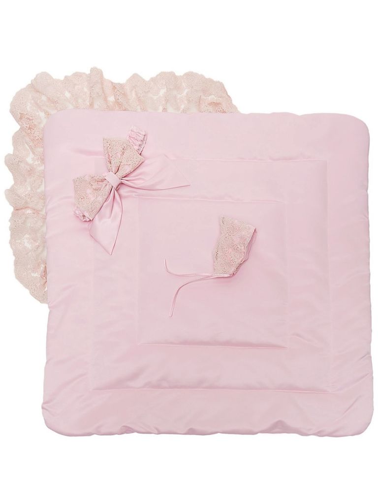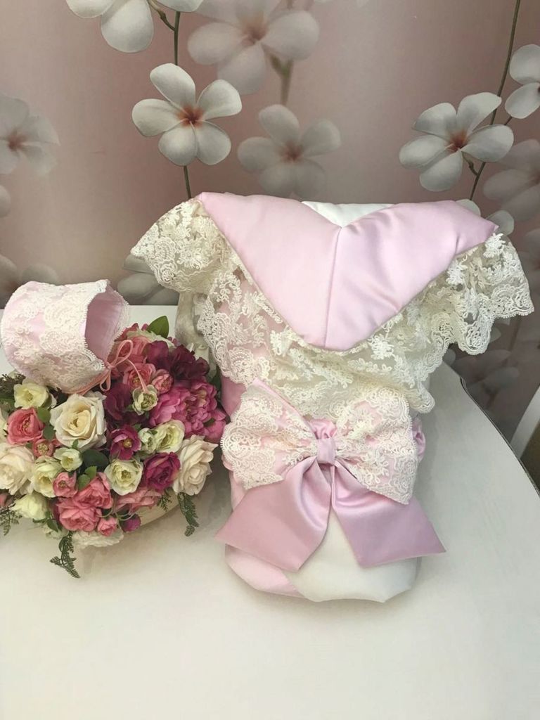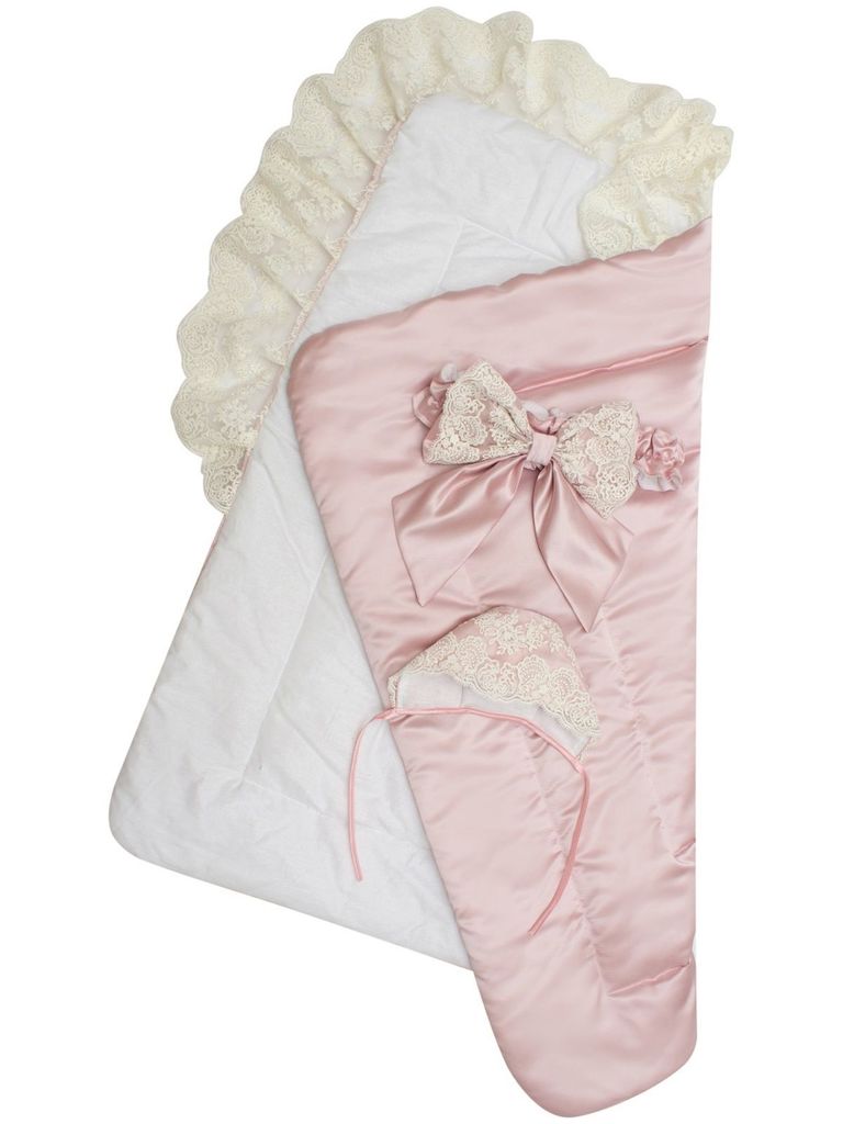 Зимний конверт-одеяло на выписку "Неаполитания" утренняя роза с розовым кружевом и бантом без пледаВопросы по товару